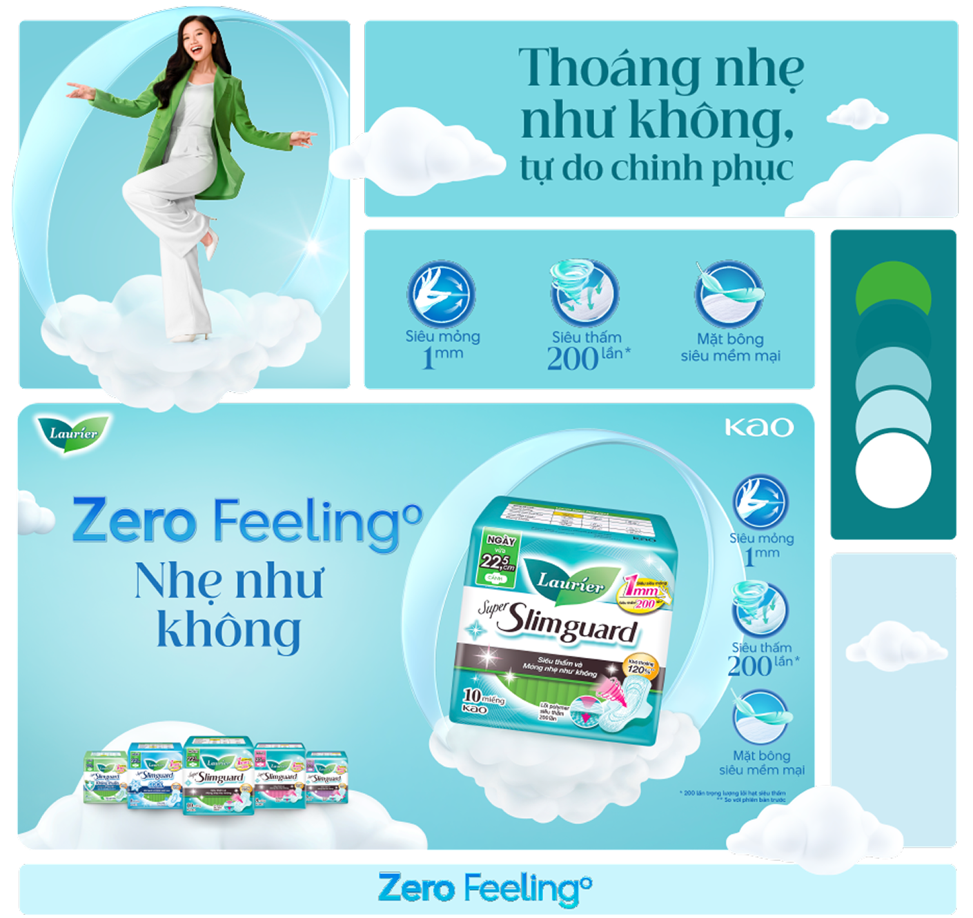 A Technology-led Promise, Emotionally Felt. We introduced Laurier’s Zero Feeling 1mm pad with a powerful insight: what truly matters is the sense of carefree, confidence and comfort women experience in every role they play in life. The campaign highlighted the product’s cutting-edge features (1mm thin, 200x absorbency) with a light-as-air aesthetic, resonating with modern women’s needs. Expertise showcased: Product demonstration through design, minimalist tech storytelling, feminine care insight.
